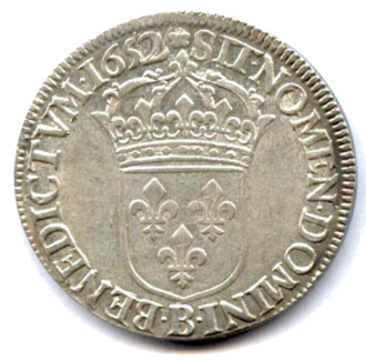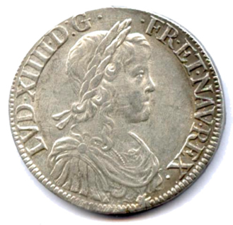 Écu d'argent à la mèche longue, 1652. 27,50g