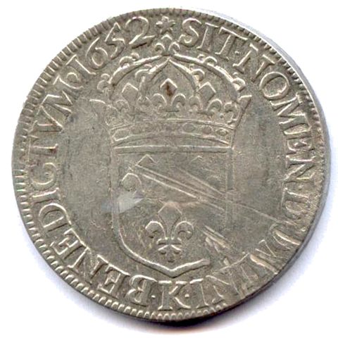 Écu d'argent à la mèche longue, 1652. 27,24g