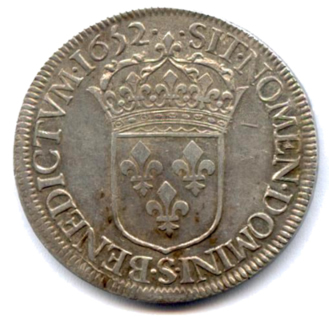 Écu d'argent à la mèche longue, 1652. 27,14g