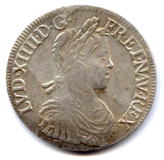 Écu d'argent à la mèche longue, 1652. 27,18g