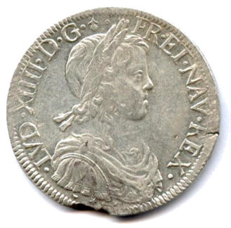 Écu d'argent à la mèche longue, 1653. 27,02g