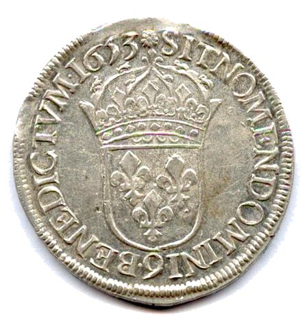 Écu d'argent à la mèche longue, 1653. 26,07g