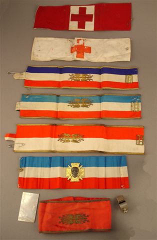 Lot de 7 BRASSARDS: 4 d'état-major, 2 de la Croix Rouge, 1 de la Croix de Fer.
