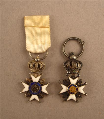 b) Ordre du Lys. Deux miniatures. Argent, émail, un ruban. T.B.