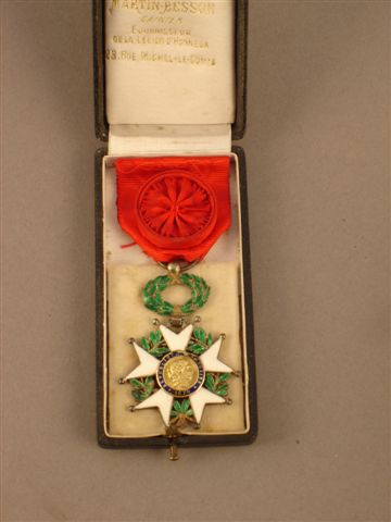 Argent, émail (éclats), ruban à rosette, écrin. T.B.