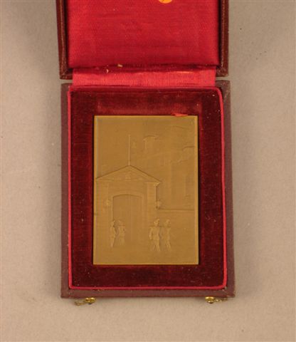 Cinq médailles de table en bronze et bronze doré, avec trois écrins: