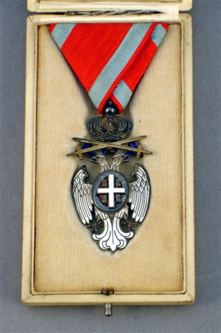 Ordre créé par le roi Milan Ier en 1882, en souvenir du rétablissement de la royauté, pour récompenser les services exceptionnels civils et militaires. Attribué à titre militaire, il portait deux épées croisées au dessus de l'aigle. Il comporte 5 classes: Grand-Croix, Grand Officier, Commandeur, Officier et Chevalier.