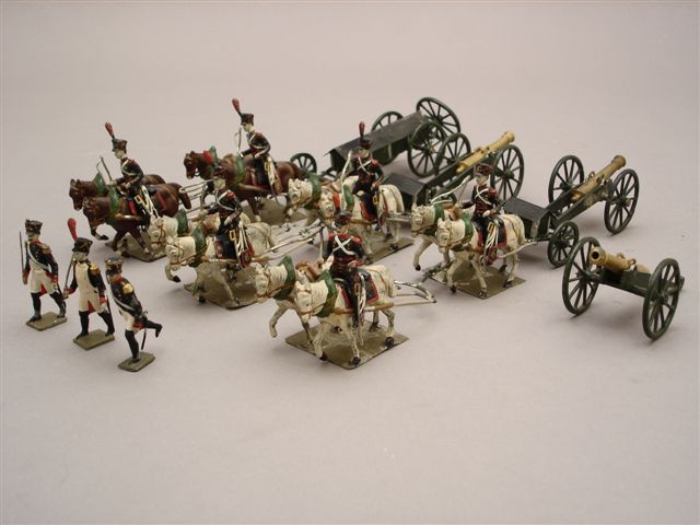 CGB, ronde bosse, 3ème grandeur. Armée du Ier Empire. Attelage de l'ambulance, 2 trains d'artillerie et 3 officiers. Joint 1 canon. État d'usage.
