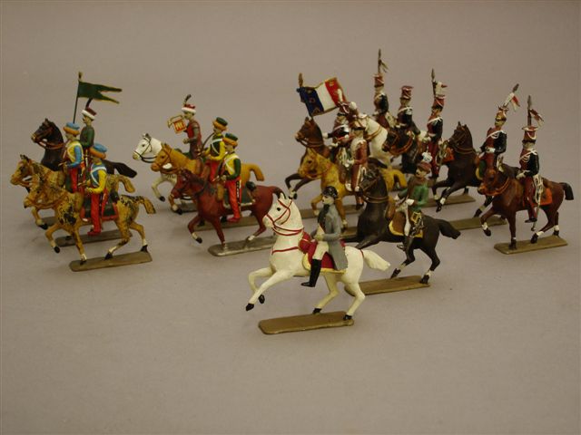 CGB, ronde bosse, 3ème grandeur. Armée du Ier Empire. Cavalerie de la Garde Impériale. 13 cavaliers dont 6 Mamelouks. Napoléon au trot et son garde Mamelouk à cheval. Bon état d'usage.