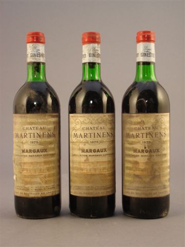 Château MARTINENS, Margaux, 1975. 3 bouteilles (justes).