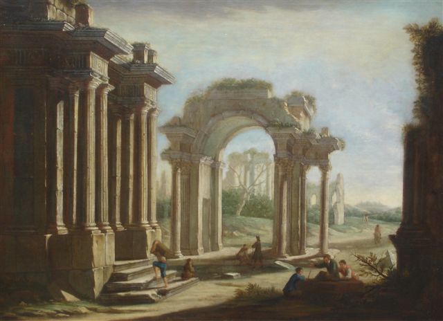 Paysage de ruines romaines.
