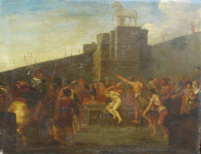 École ROMAINE vers 1640.Le martyre de Saint Laurent.Cuivre.24 x 30...