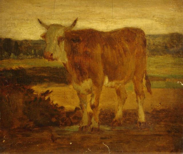 Constant TROYON (Sèvres 1810 - 1924)Vache dans un champ. Panneau...