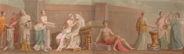 Ce tableau est une reprise de la célèbre fresque exposée dans la salle dite Aldobrandine du Vatican.