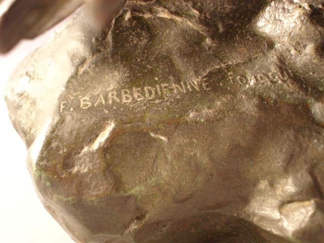 Bronze à patine brune. Signé sur la terrasse naturaliste: A L Barye et à l'arrière: " F. Barbedienne. Fondeur "