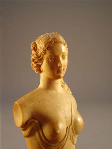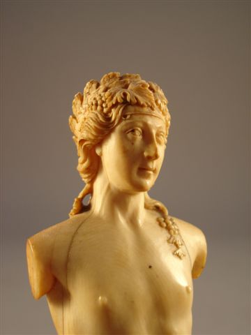 PAIRE de BUSTES en ivoire sculpté, représentant deux personnages: Bacchus (l'autonome) et Cérès (l'été).