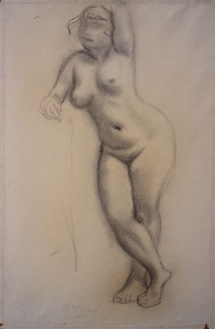 Arnod BRECKER (1900-1991)Nu féminin debout, jambes croisées, bras gauche relevé.Graphite,...
