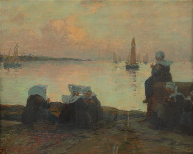Fernand Marie-Eugène LEGOUT-GÉRARD (1856-1924)Bretonnes sur le quai du port au...