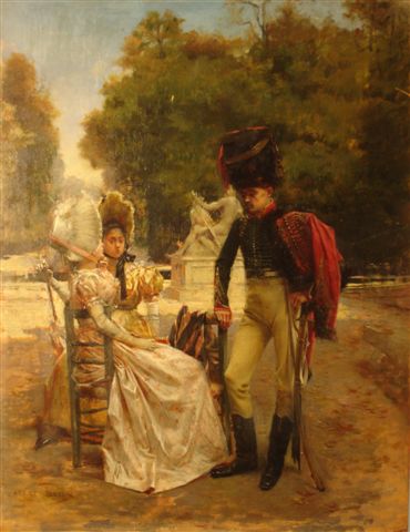 Henri-Victor LESUR (né en 1863)La conversation au parc : hussard...