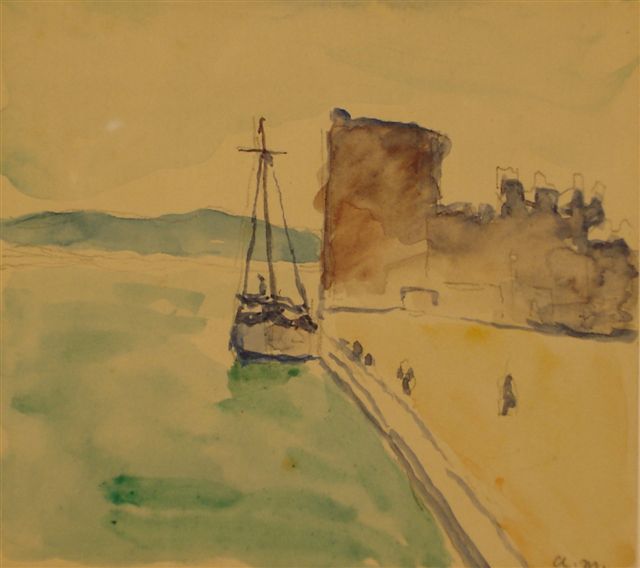 Albert MARQUET (1875 - 1947)Voilier le long de la jetée.Aquarelle...