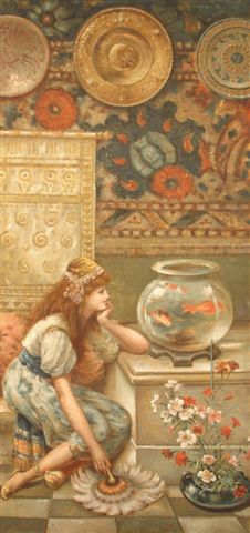 École ORIENTALISTE du XIXème siècle.Jeune fille devant le bocal de...