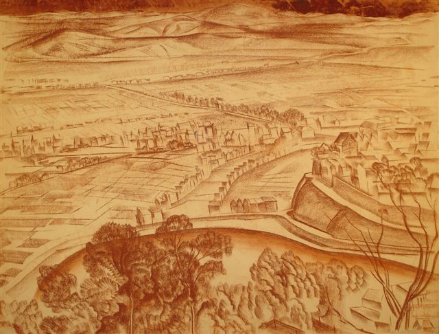 Alexandre IACOVLEFFVue de Tananarive, Madagascar. Sanguine sur carton. Situé, signé...