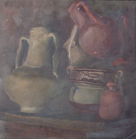 Alexandre IACOVLEFFNature morte, cruche à deux anses et poteries. Huile...