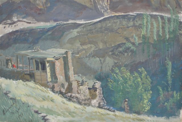 Alexandre IACOVLEFFUn bungalow à Misgar.Tempera sur toile contrecollée sur carton,...