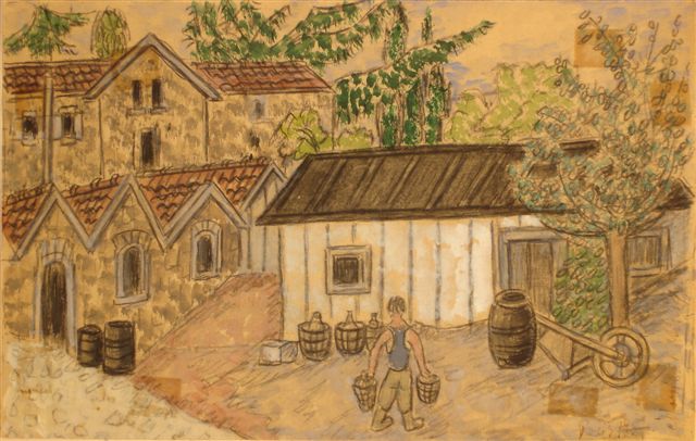 Aquarelle et craie noire, localisée Paris, datée 1957 et signée en bas à droite.