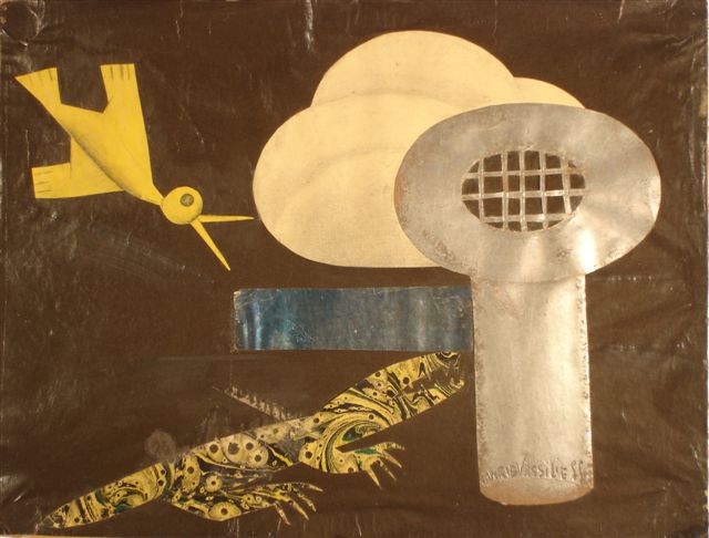 VASSILIEFFComposition à l'oiseau et au lézard.Collage, signé en bas à...