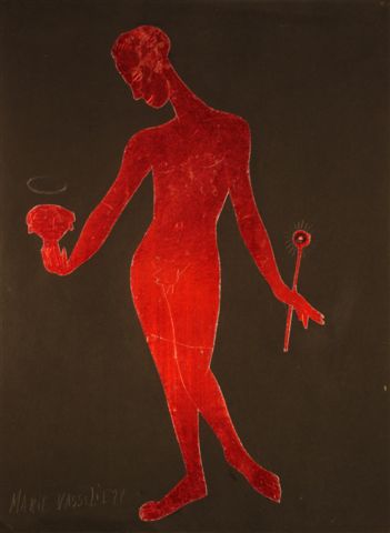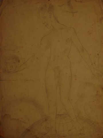 VASSILIEFFPersonnage mythologique.Feuille métallique contrecollée et crayon, signée en bas à...