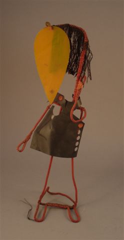 Figure en fil de fer, matière plastique et fibres synthétiques.