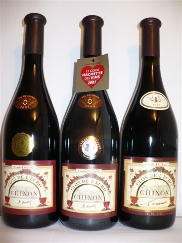 COULY-DUTHEIL, Chinon, 3 bouteilles: Clos de l'Écho 2005, Clos de l'Écho 2004, Clos de l'Écho Cuvée Crescendo 1997.