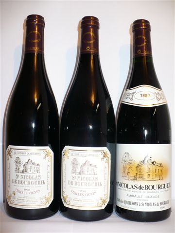 Clos des QUARTERONS, Saint Nicolas de Bourgueil, 3 bouteilles: 2005, 2004, 1987.