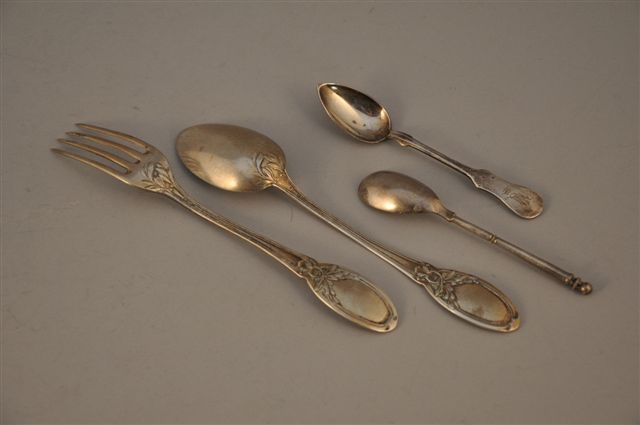 LOT en argent comprenant un COUVERT d'enfant , à spatule ovale ornée de lauriers, une CUILLERE à moka monogrammée RM à spatule violonée, une CUILLERE à oeuf à tige de section ronde.