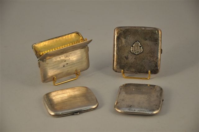LOT de QUATRE ÉTUIS À CIGARETTES en argent. Décor martelé pour deux et décor guilloché de rayures pour deux autres.