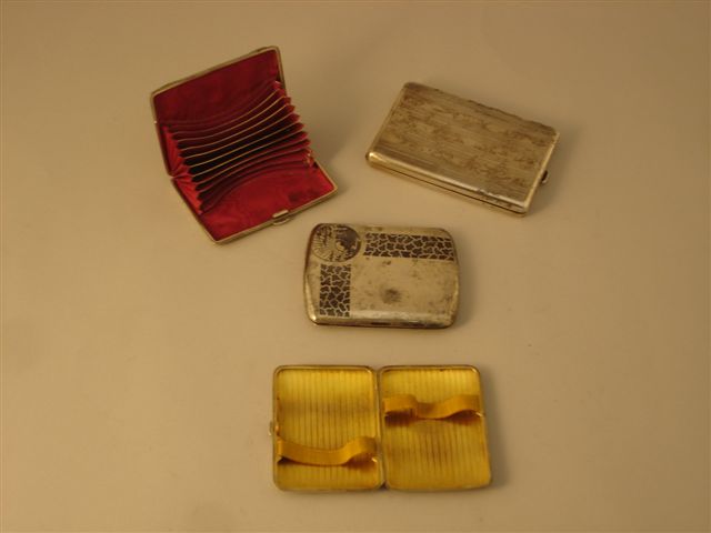 LOT de QUATRE ÉTUIS À CIGARETTES en argent à décor d'entrelacs, arabesques, bandeaux géométriques, filets et motifs japonisants. Le premier porte le poinçon de la ville de Londres, 1886. Les trois autres portent le poinçon à tête de sanglier. Poids brut: 485 g.