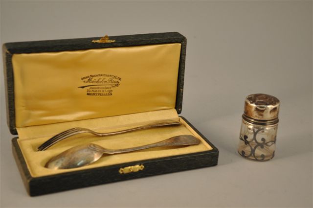 RAMASSE-MIETTES et PELLE en argent. Le manche en argent fourré à décor de volutes enroulées, feuilles d'acanthe et coquilles. Dans le goût Rocaille. Style Louis XV. Napoléon III. Pelle: Long. 21,5 - Larg. 18 cm.