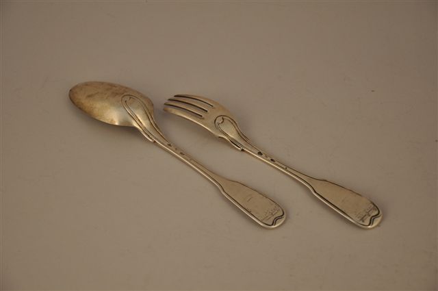 COUVERT DE TABLE en argent. Modèle filet. Armoiries surmontées d'une couronne comtale. Reims, 1768-1774.