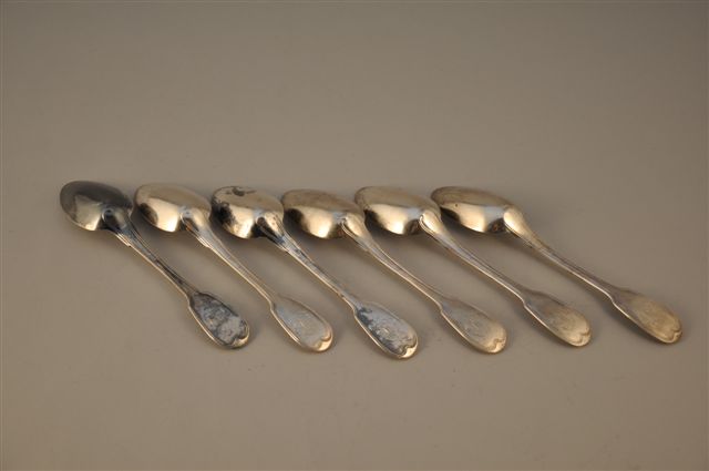 SIX CUILLÈRES en argent uni, modèle filet. Traces de poinçon. XVIIIème siècle.