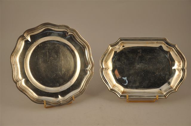 DEUX PLATS en argent, l'un rond, l'autre ovale. Modèle à filets, poinçon Minerve.