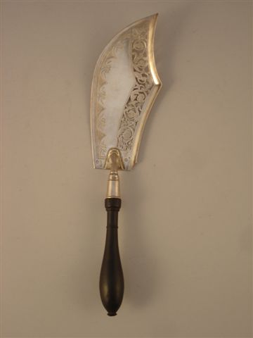 PELLE À POISSON en argent à décor de rinceaux fleuris gravés. Le manche en bois noirci. Paris, 1809-1819.
