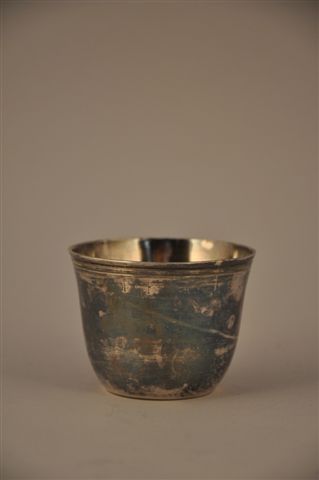 TIMBALE dite CURON de CHASSE en argent uni, avec filets et initiales "F R". XVIIIème. Paris? Poinçons en partie effacés.