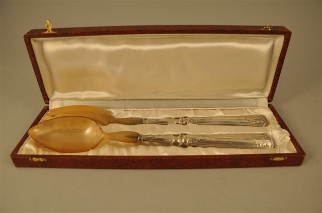 COUVERT À SALADE en argent modèle à coquille. Poinçon Minerve. Ecrin.