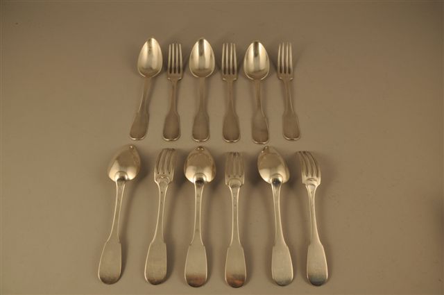 6 COUVERTS DE TABLE en argent modèle uniplat. Poinçon Minerve.