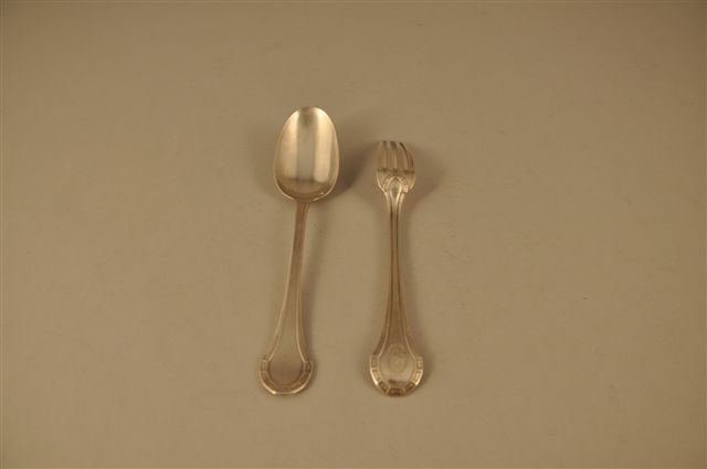 COUVERT DE TABLE en argent modèle Art Déco, monogrammé " C S ". Poinçon Minerve.