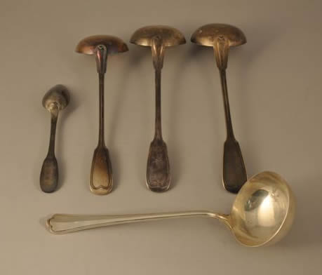 Joint: 3 louches en métal argenté, modèle filet, et une cuillère en métal argenté, modèle uniplat.