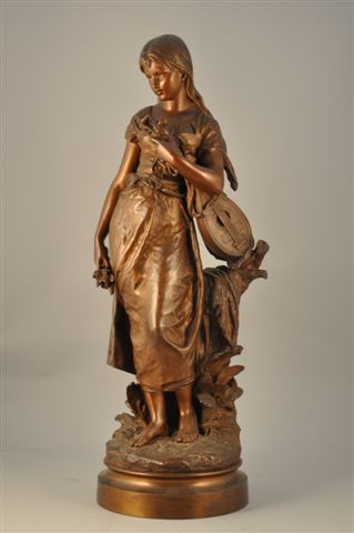 Auguste Louis Mathurin MOREAU (1834-1917) Jeune fille à la mandoline. Bronze patiné. Signé sur la terrasse. Haut. 80 cm.
