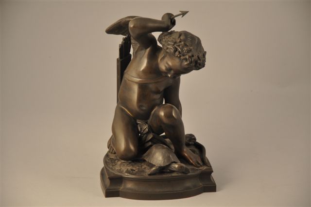 Louis Valentin Élias ROBERT (1821 - 1874). L'Amour à la tortue. Bronze à patine brune. Fonte d'édition ancienne. Signé sur la terrasse. Seconde moitié du XIXème siècle. Haut. 30 cm.