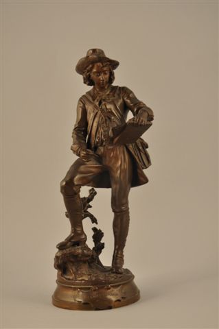 Adrien Étienne GAUDEZ (1845-1902). Claude Lorrain. Bronze à patine médaille, signé et intitulé dans un cartouche sur la terrasse. Haut. 36,5 cm.
